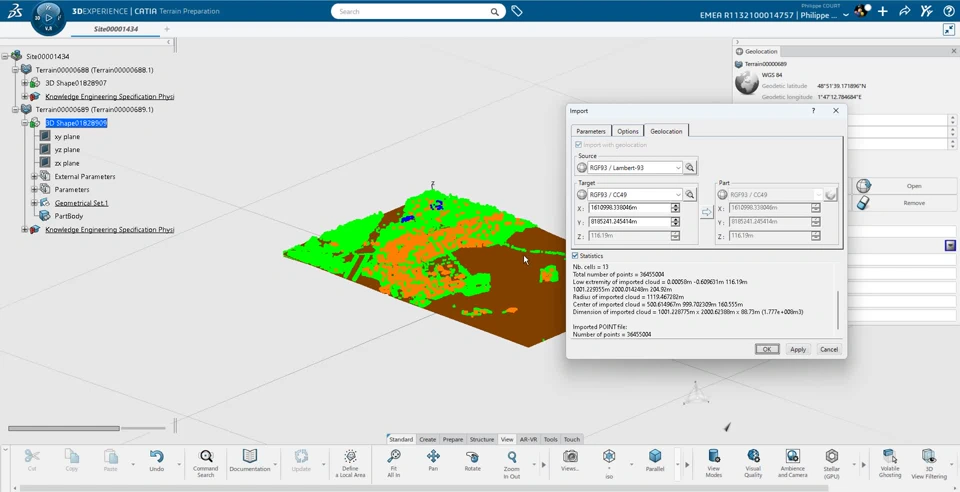 Hello community, As a surveyor calculator I need to export CATIA models to AutoCAD. Since DWG export is not (yet ;-) available, we use the IFC export. However, the IFC export is by default "tesselated," which makes the model unusable in AutoCAD. To bypass, we export to STEP and then move the model in AutoCAD because geolocation is not supported by the STEP export. In the past, I believe the IFC export was in "exact" mode because the file sizes were much larger. But today, there is no option