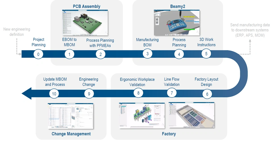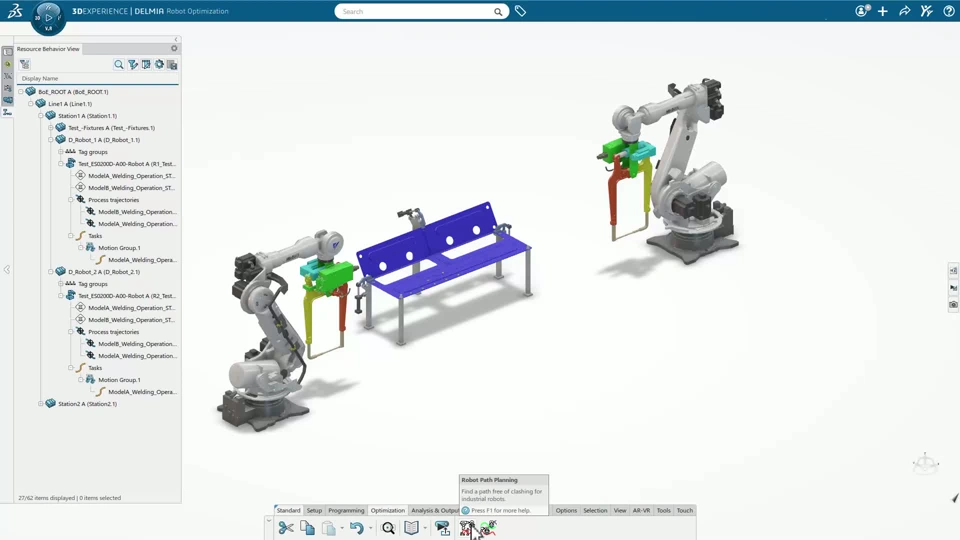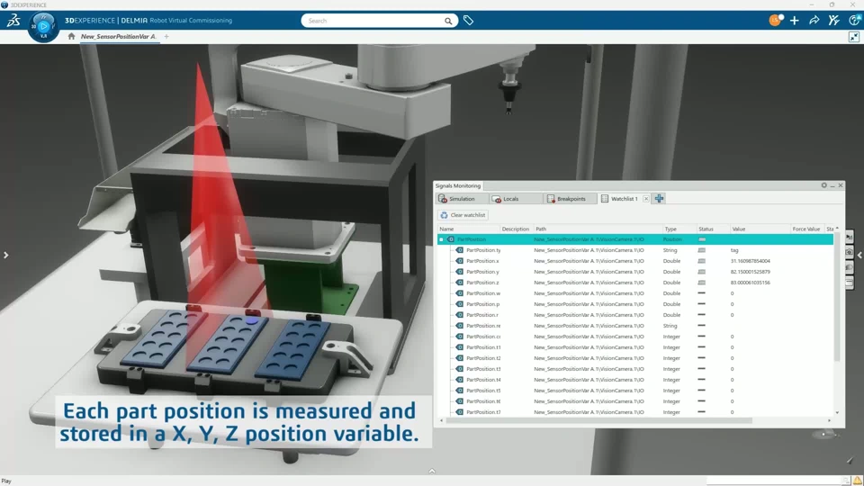 In Dassault Systemes, DELMIA Robot Virtual commissioning app provides virtual workcell which includes multiple programmable Resources controller (Robots, Conveyors, AMRs…) with their behaviors, and communication equipment (sensors, command panel…), we call Plant Behavior Models. DS is not providing PLC & development Framework, but Catia Controlbuild can create PLC (Programmable Logical Controller)program and Emulation to manage the actuators of the station (Motors, Robots, Conveyors…), the