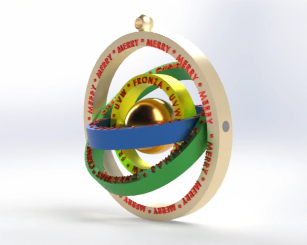 This project features a gyroscopic Christmas ornament, composed of multiple concentric layers that rotate independently. As the motion unfolds, the phrase “Merry Christmas 2025” is progressively revealed across each layer, highlighting the interplay between form, movement, and message. The core concept draws an analogy between the constant dynamism of the world and the need for continuous adaptation. The gyroscopic mechanism symbolizes this ongoing motion, while the stratified composition