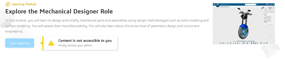 Hii! Everyone, Please help me out, I just bought the 3DEXPERIENCE ENGINEER for STUDENTS, which states it has 4 certifications, but when I open 3DExperience Edu for mechanical designer in catia, it shows that i that content is not accessible for me, then, how can i access the content i bought?, or what can i do?