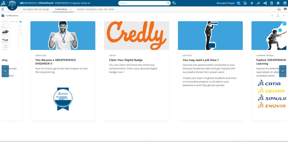 I have subscribed the 3DEXPERIENCE Engineer for Students program during the offer period (CyberMonday Offer 80% off) . My account ID is OI000466404 – NAYAK_B. I am able to access all the learning content without any issue. However, I am unable to find or access the certification exam page anywhere in the platform. I am not seeing any option to start the certification test. Requesting the concern admin to guide me on where I can locate the certification exam or help me resolve this issue? I am