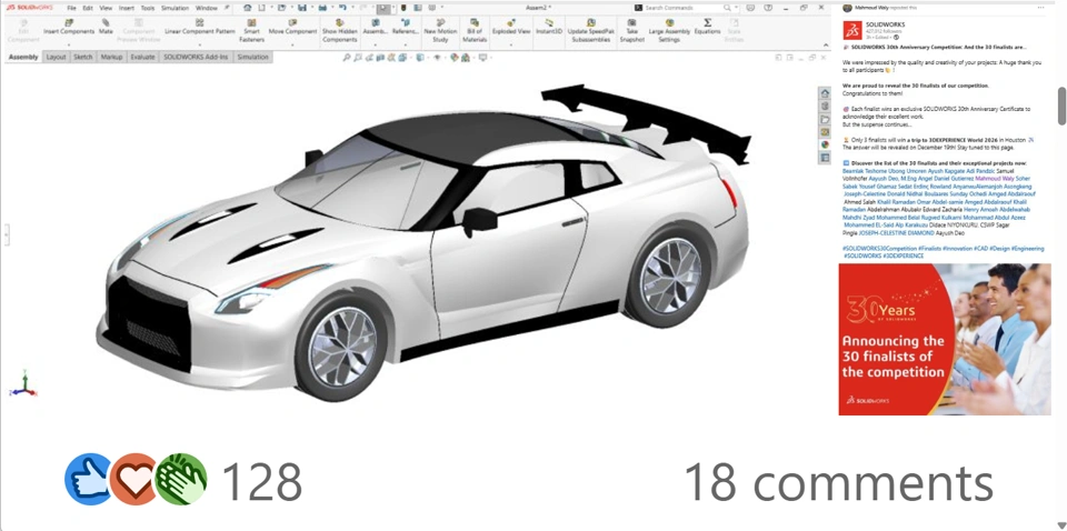 𝐓𝐨𝐩 𝟑𝟎 𝐢𝐧 𝐭𝐡𝐞 𝐭𝐡𝐞 SOLIDWORKS 𝟑𝟎𝐭𝐡 𝐀𝐧𝐧𝐢𝐯𝐞𝐫𝐬𝐚𝐫𝐲 𝐂𝐨𝐦𝐩𝐞𝐭𝐢𝐭𝐢𝐨𝐧!… 𝐮𝐧𝐛𝐞𝐥𝐢𝐞𝐯𝐚𝐛𝐥𝐞 !! 🎉🔥
