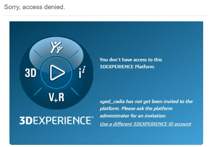 I purchased the 3DEXPERIENCE CATIA Student edition and received the official "Get Started" activation email 16 hours ago. However, I am completely locked out. Every time I follow the activation link (or try the portal directly), I get the error: "You don't have access... syed_cadia has not yet been invited to the platform." I know the standard troubleshooting steps and I have already tried all of them with no luck: Incognito / Private windows Clearing cache and cookies 3 different browsers