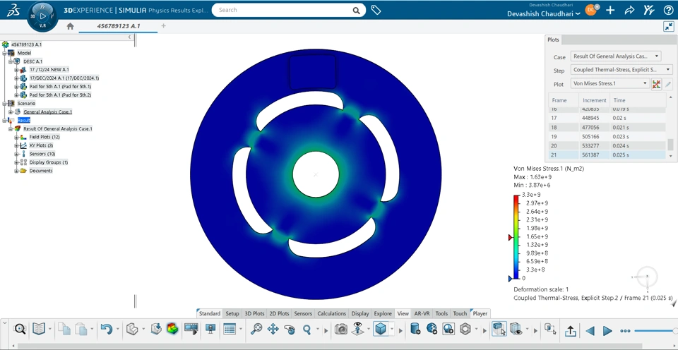 Braking plays a critical role in Formula Student vehicles, where components must handle intense heat and mechanical loads during rapid deceleration. The brake disc is especially affected, experiencing high temperatures and stresses that can influence performance and durability. In this study, the initial phase of the simulation involved analysing a plain, solid brake disc model without any ventilation channels, slots, or geometric complexities. This baseline analysis was carried out using the