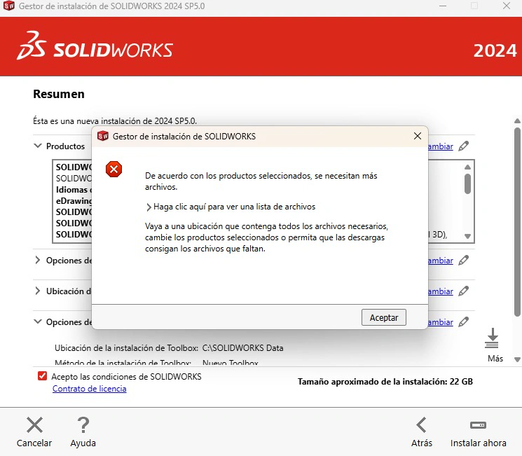 Hi, i have a problem when attemp install solid The problem is 'According to the selected products, more files are needed' I dont know what to do Edu SOLIDWORKS