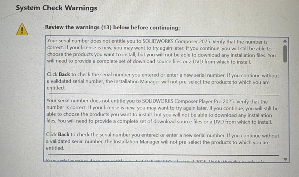 I got my conformation email and tried following the installation instructions, and entering my serial number into the 3d design space and leving the pre-filled rest as is, but i keep getting the message bellow despite the website listing that i have access to all of these, any help would be appreciated, Thanks. Edu SOLIDWORKS