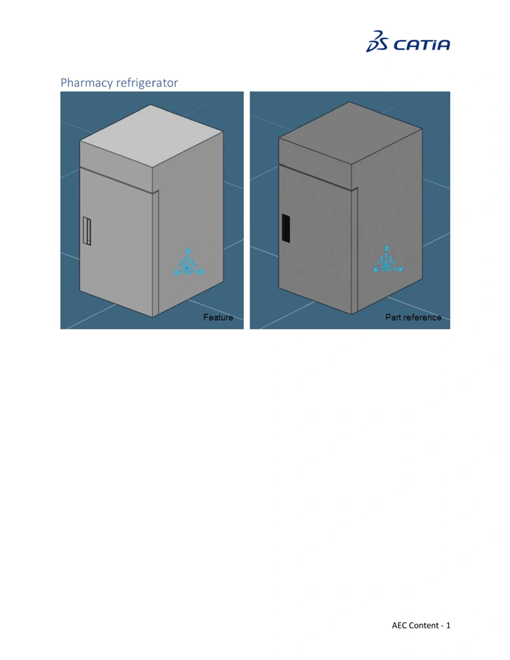 2026 Hospital content Equipment Reference Reference Image 3DXML: Object Type Name: OT-Hospital Equipment-Pharmacy Refrigerator Documentation:Input Axis System: The Input Axis System for the pharmacy refrigerator is centered on the back edge. The X axis points towards the front of the refrigerator. Configurations Single Door-Small Double Door-Small Single Door-Medium Double Door-Medium Single Door-Large Double Door-Large Full Documentation in PDF: