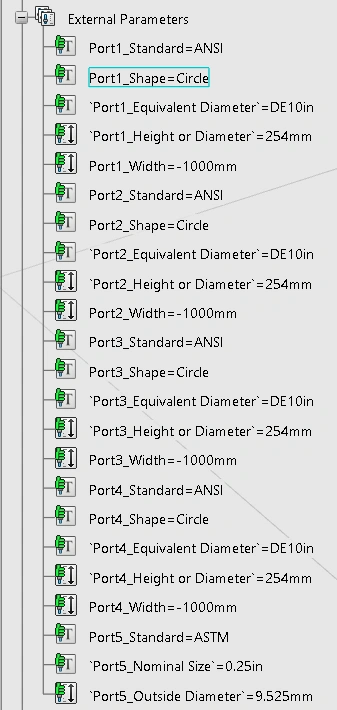 Supply/Return Exhaust Air Terminal - 3 Spigots Pictures Features Embedded in the Part Configurable port parameters that control the geometry of the spigot. CoverType: Select the type of cover for the diffuser, parameters to control the cover types will adjust dynamically based on selection. Blank Grill Swirl Slotted, Swirl Radial and Swirl Radial with Vanes Louvre Planar and Planar Perforated Diffuser Size: Select the size for the diffuser Visibility: Change the visibility of the equipment