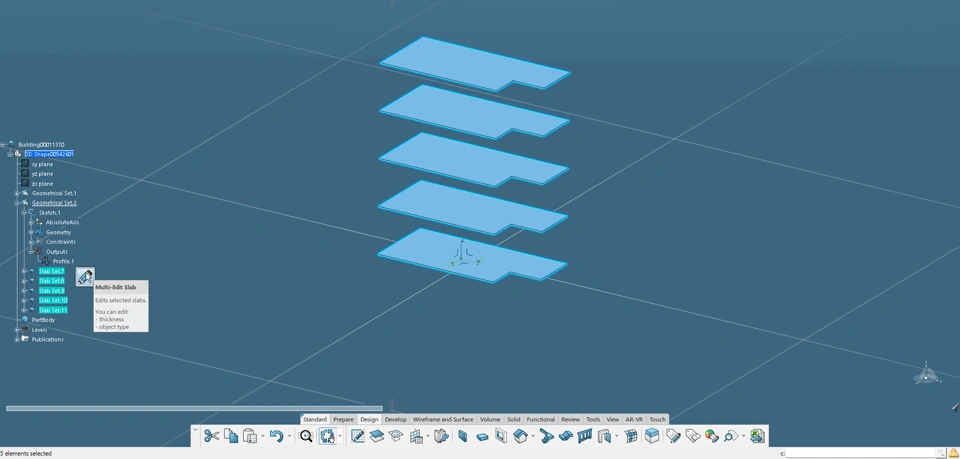 DescriptionFloor/Slab Objects can be used with Building 3D Design to convert low-level slab features into higher-level slab features. These features can then be converted to an even higher-detailed product assembly structure. Parameters / Outputs Note: Parameters will slightly vary depending on the floor/slab object-type selected How Its Used / Image GalleryCreate the desired slabs using the "Slab" function in Building 3D Design Shift-select the desired floor/slab(s) then select