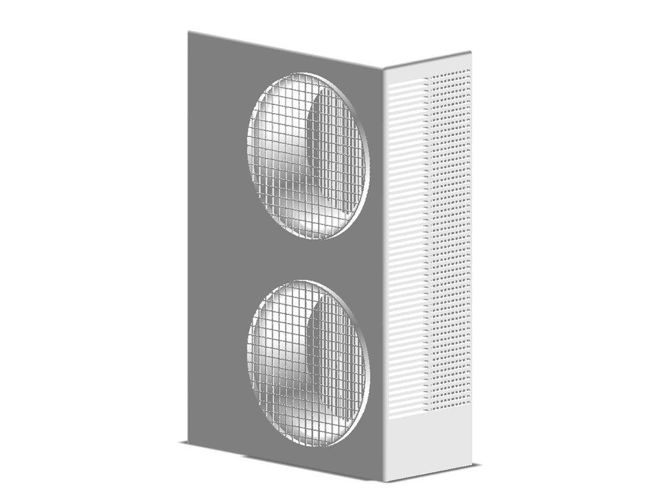 AC Split - Outside Twin Unit Pictures Features Embedded in the Part Configurable port parameters that control the geometry of the piping ports. Size: Select the size of the unit based on commercially available standards. Visibility: Change the visibility of the equipment between 3D representation, 2D representation or both. 3DXML