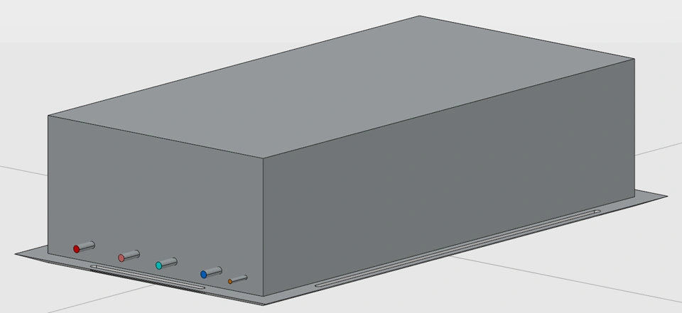 Linear Slot Air Diffuser Pictures Features Embedded in the Part Configurable port parameters that control the geometry of the spigot. Number of Slots: Select the number of slots in the diffuser. Visibility: Change the visibility of the equipment between 3D representation, 2D representation or both. Diffuser Length: Select the overall length of the diffuser. Diffuser Width: Calculated from the number of slots selected. Wall Thickness: Sheet metal thickness of the diffuser. 3DXML
