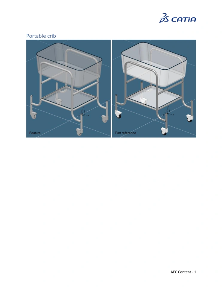 2026 Hospital content Furniture Reference Reference Image 3DXML: Object Type Name: OT-Hospital Furniture-Portable Crib Documentation:Input Axis System: The Input Axis System for the portable crib is centered on one of long edge of the crib footprint. The X axis points towards the center of the crib. Full Documentation in PDF: