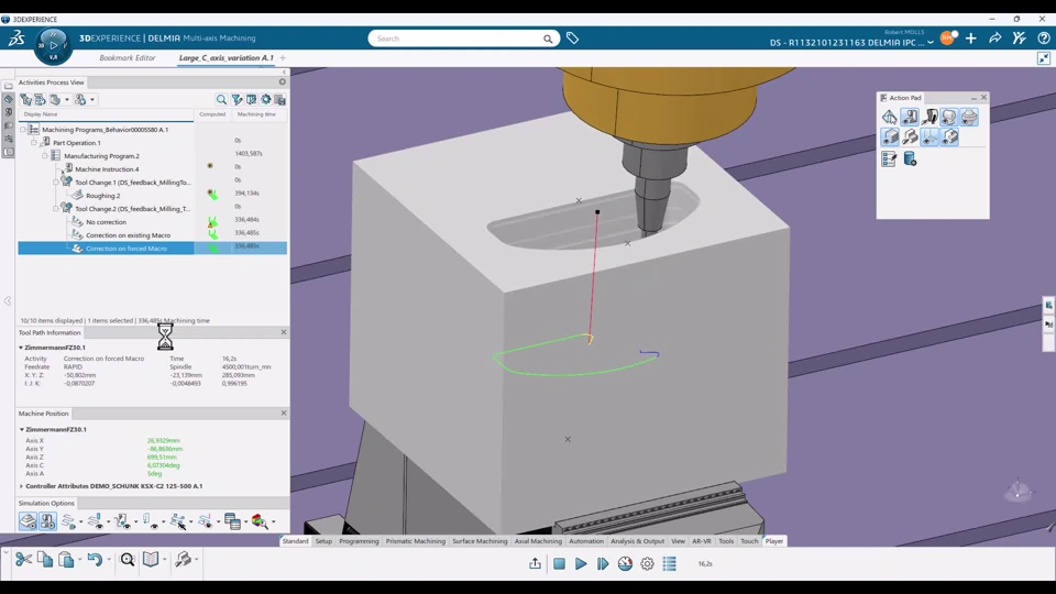 Hi community, When creating a machine, you can set the priority of the rotary axes (e.g., Default, Minus, or Plus). This option is very convenient, but it would be much more interesting to be able to insert the option to position the machine in Minus or Plus before machining operation, depending on machining or collision requirements. Normally, an APT word is inserted (e.g., MODE/BAXIS,PLUS or MODE/BAXIS,MINUS, or to manage the C-axis singularity, ROTATE/CAXIS,ON,180...) and the PostProcessor