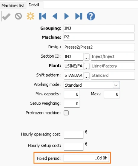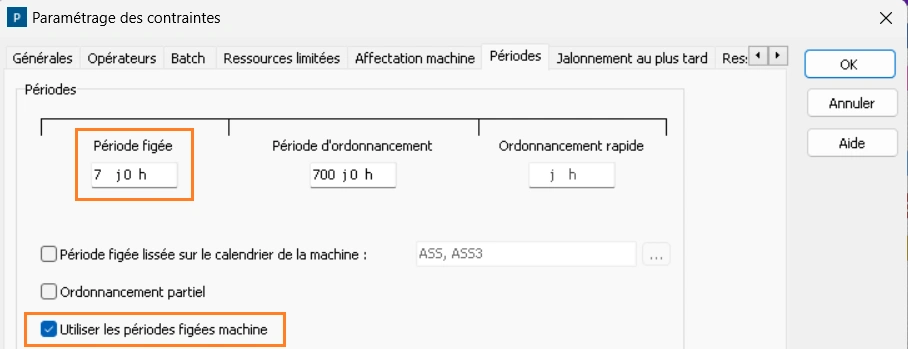 DELMIA Ortems R2026 - il est désormais possible de configurer une période figée d’ordonnancement par machine