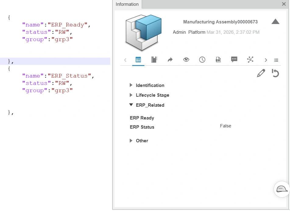 IntroductionTransform your web app’s information panel into a user-friendly experience! Easily reorder, group and validate attributes to make managing complex objects effortless and intuitive. What is possible: Grouping attributes Make attribute Read Only Add authorized values Make attribute mandatory Prevent forbidden characters Hide attribute Mask customization is available within the ENOVIA Properties panel for both OOTB and custom attributes. Version – Validated on 2026x GA