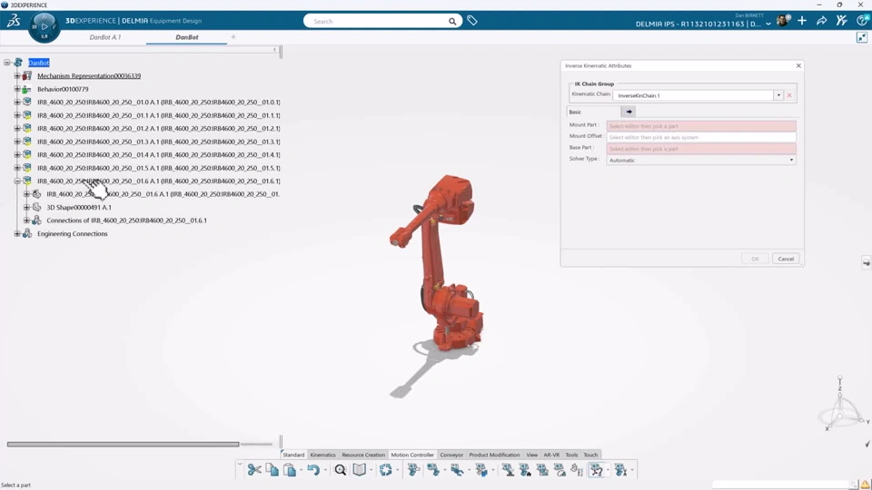 When creating a kinematic mechanism (for example, robot rail, lift assistor, etc.) in the DELMIA Equipment Design ap, it is recommended to wait until the very last step to convert it to a Programmable Mechanical Resource. The reason why... once you define your Assembly as a Mechanical Resource, then there is no undo back to an Assembly. If you decide that you want to drive your Tool Equipment as an inverse kinematic mechanism, then now in R2025x FD04, you have the capability to convert a Tool