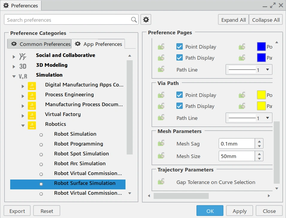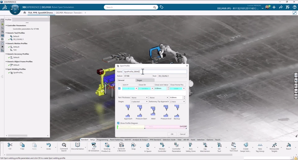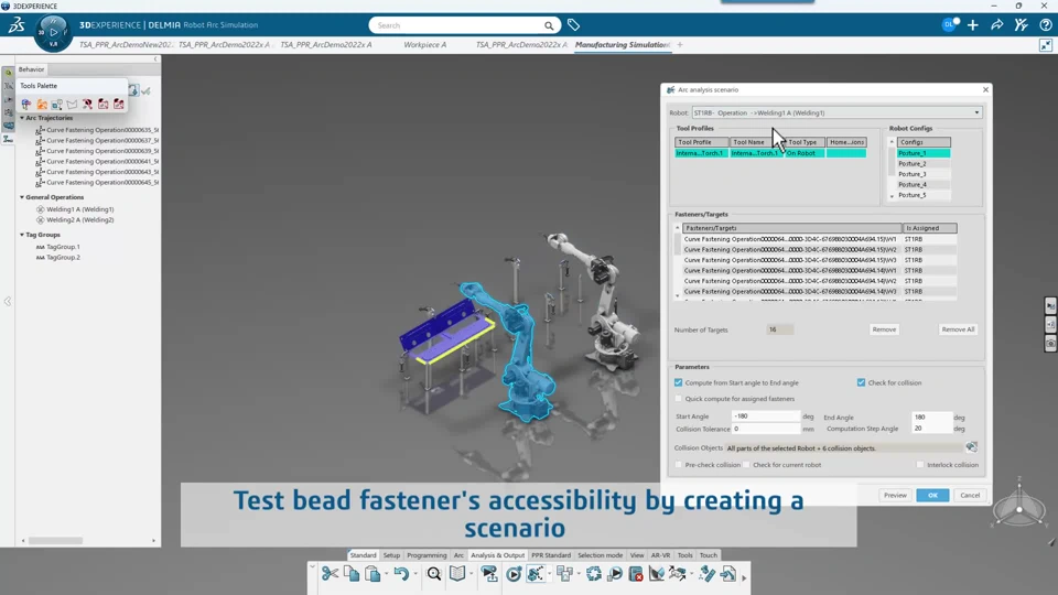 From r2023x FD03 we have added the robot arc simulation Apps in all BIW industry roles : RBWRT : Body-In-White Robotics Engineer RBWPR : Body-In-White Robot Programmer Value The addition of the arc simulation application allows these roles to fully cover the OEM and Line builder process needs by covering arc welding (TIG, MIG, …), laser welding, structural glue deposition, friction stir welding, … Highlights Program any Robotics process where trajectories are based on part intersections and