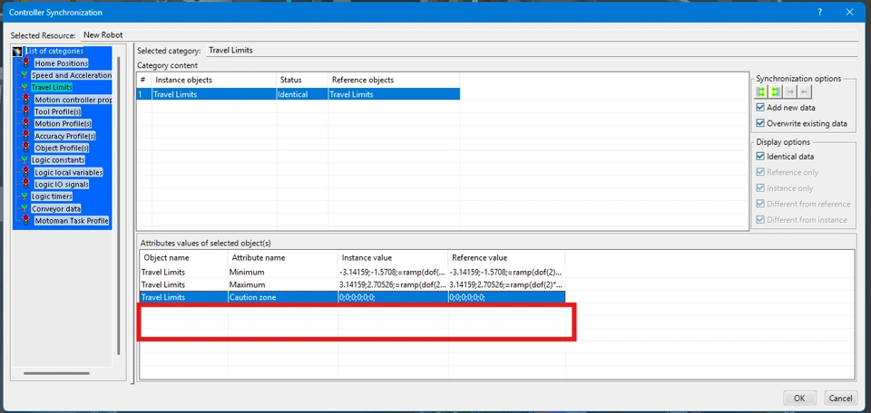 I'm on 24x and I just noticed that my robot softlimits do not update from the reference values when performing a controller sychronization. Any ideas why the softlimits are not in the list? Is there a preference or an ENV variable that I'm missing?