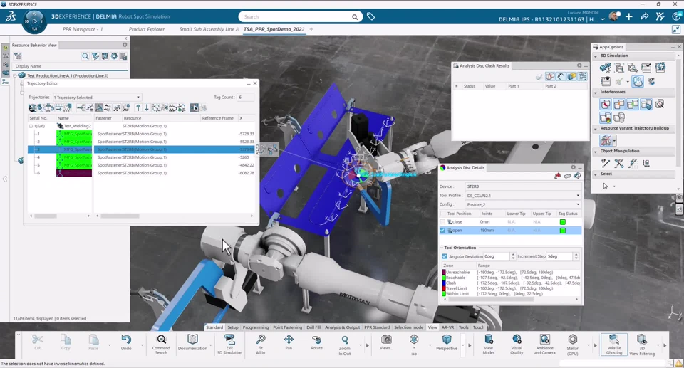 I'm happy to start a series of posts about what's new with the upcoming r2026xGA release. This represents a significant enhancement for arc welding. Users working on spot welding are using, since long time, even in DELMIA V5 an apps called “tool analysis”. This apps includes various commands for analyzing the welding gun accessibility on a robot, a station or on a complete line. It is also dedicated to balance the fasteners between the different robots. While the arc welding process has some