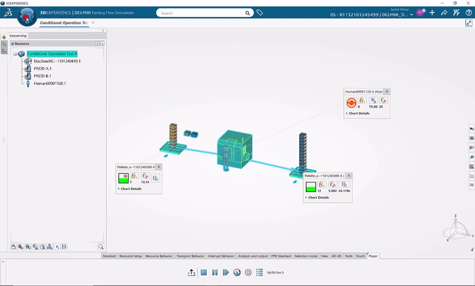 I am currently setting up a factory simulation in 3DEXPERIENCE, but I’m experiencing issues with the operator paths. The problem is that the operator in the simulation ignores the walking paths I have created and instead walks straight through machines and equipment. So far, I have defined a walk path and created collision-free paths from the resource zones to junction points on the walking path. The walking paths are set up as Worker Path.