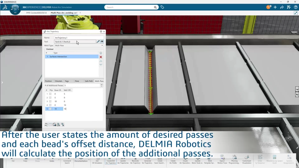 After adding arc welding weaving in 2025xFD03, we are now adding multipath arc welding in R2026GA. VALUE :Simulate the actual weaving motion or multiple robot weld paths along a single contour performed by arc welding robots which is used for welding thick metals and for filling wide, flat joints. Allows to detect collision and get an accurate cycle time estimation. Allows to build the arc welding task in the Robotics Arc welding apps or from the Bead fastener in the design structure.