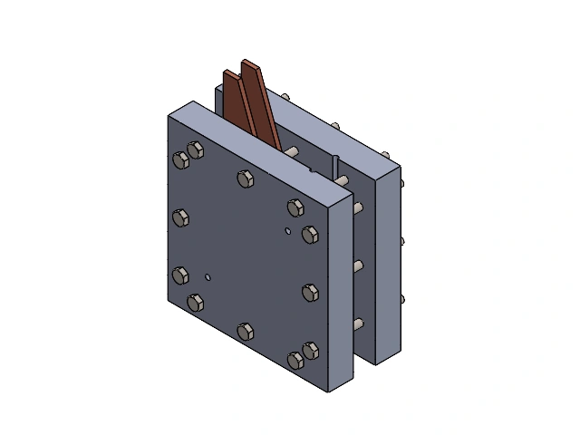 The design was created using a parts assembly program in SolidWorks, taking into account manufacturing feasibility and the correct selection of components to ensure a viable result. Each component of the fuel cell was modeled individually (the nuts used were taken from the toolbox). The Sweep and Cut-Sweep functions were used for the copper tube, allowing it to be given the appropriate cylindrical shape, as well as defining its path and correct placement within the collector plates.