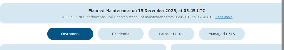 We will use the communities to notify 3DEXPERIENCE platform Users when There is an unavailability. Posts will be displayed in the relevant communities for partners and updated with each new communication.