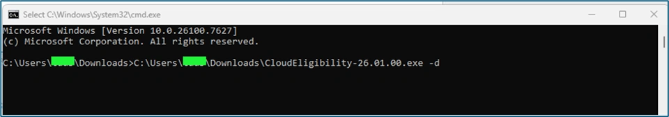 If user need full logs, then they still need to use -d option while executing the Cloud Eligibility Checker Tool, as shown below: