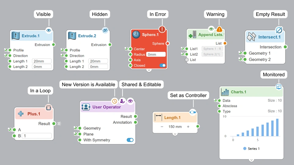 This update is a major release for CATIA Visual Scripting, as we have completely redesigned and rethought the user interface to maximize your productivity and simplify learning.