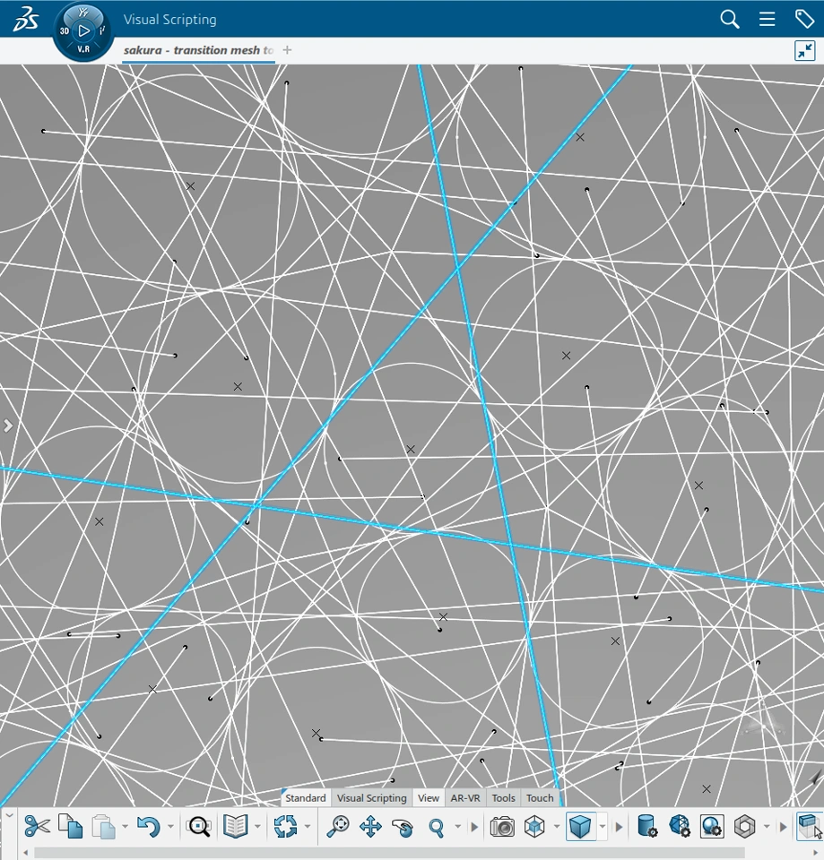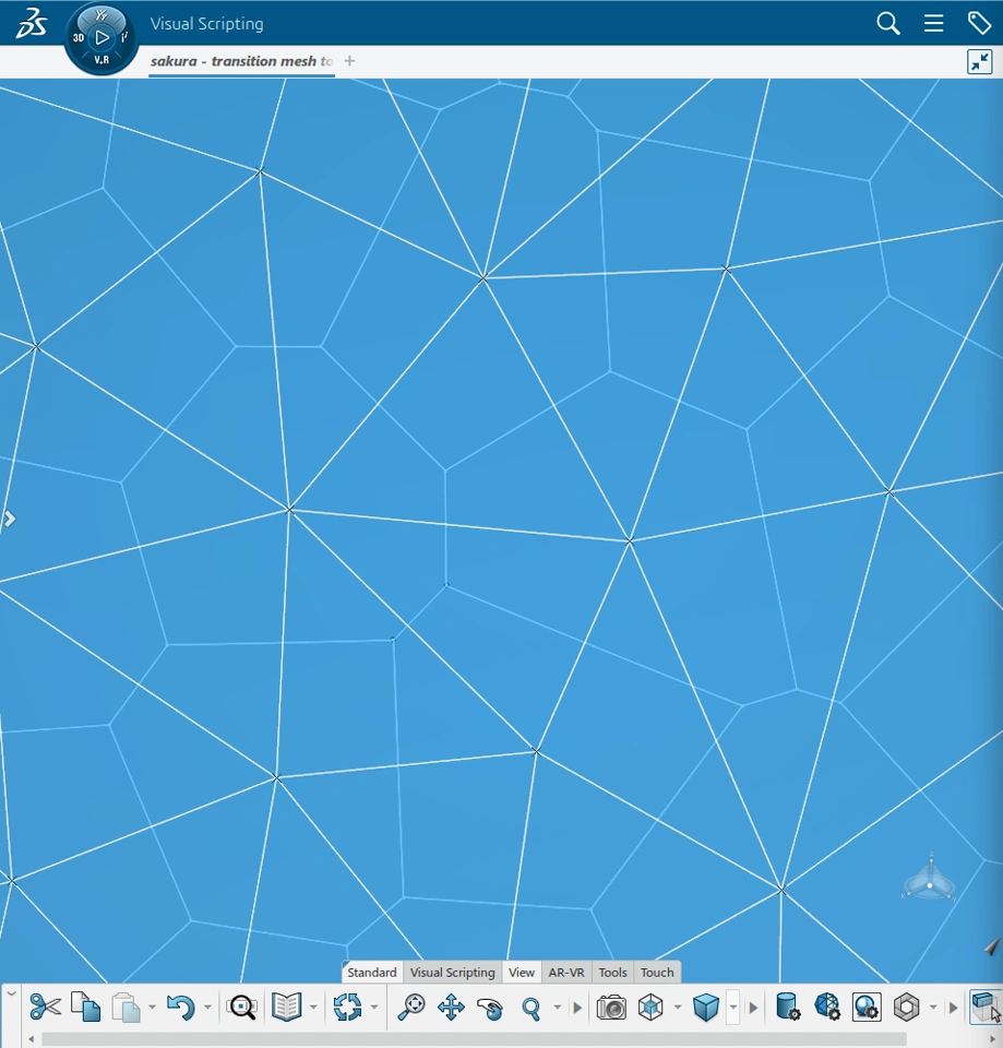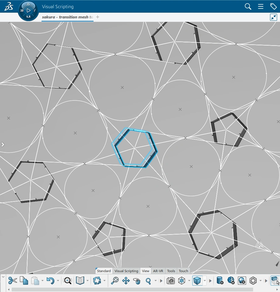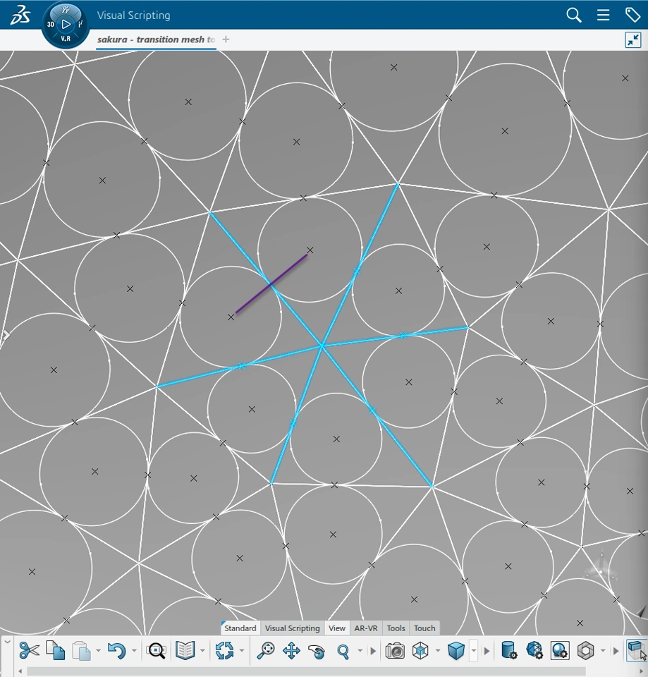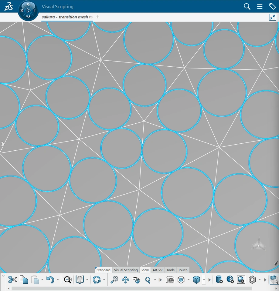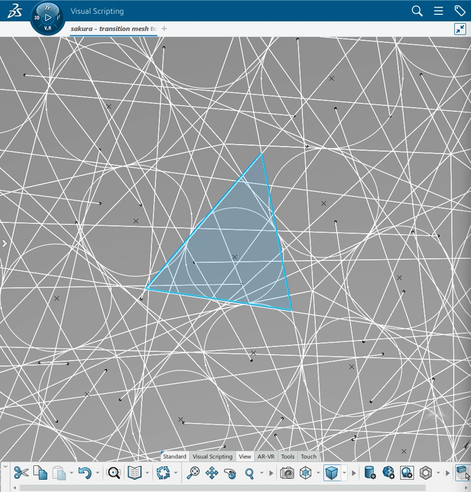 This time, I made a try on smooth transition from a triangular mesh to its dual. it requires the same property! incircles must touch their neighbours.