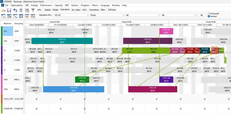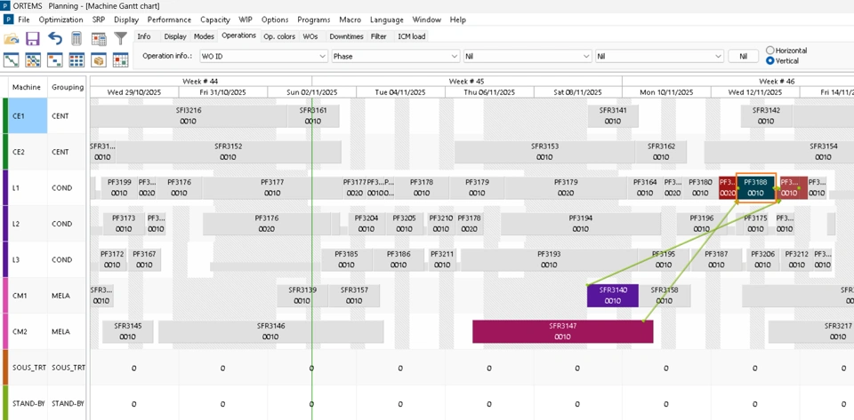After enabling “Highlighting > Add to list”, let us select another operation: the predecessor of our initial operation on the same machine (in the orange rectangle).