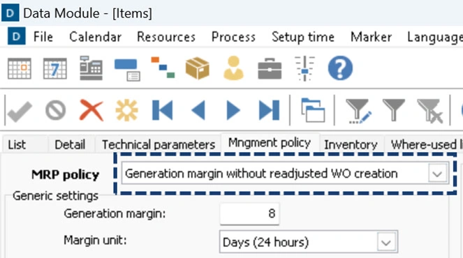 DELMIA Ortems R2026: a new MRP policy refrains from generating readjusted WOs during SRP calculation (“SP mode”)
