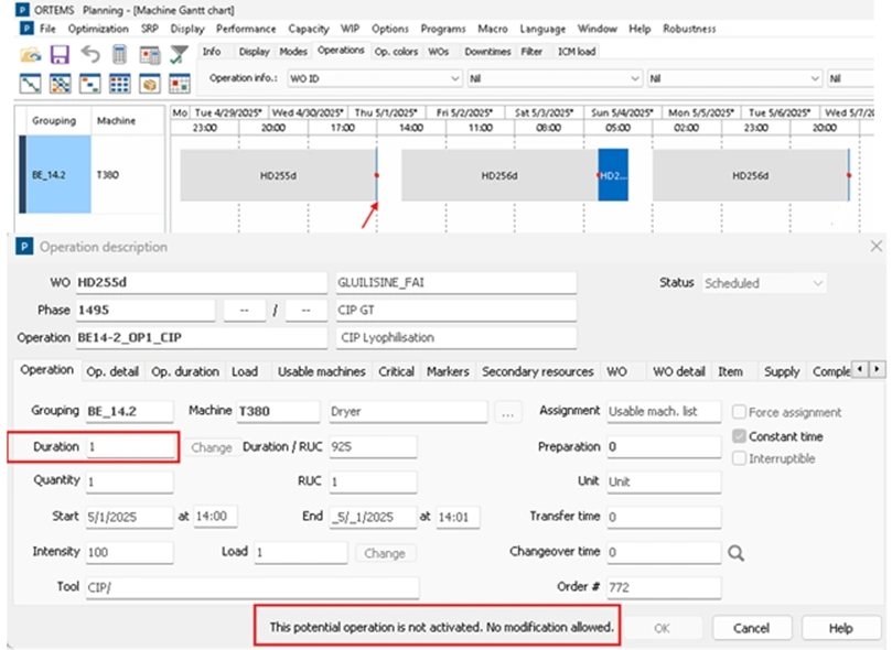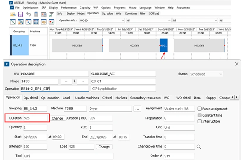 From Ortems R2026, it is possible to activate potential operations based on changeover time cycles.
