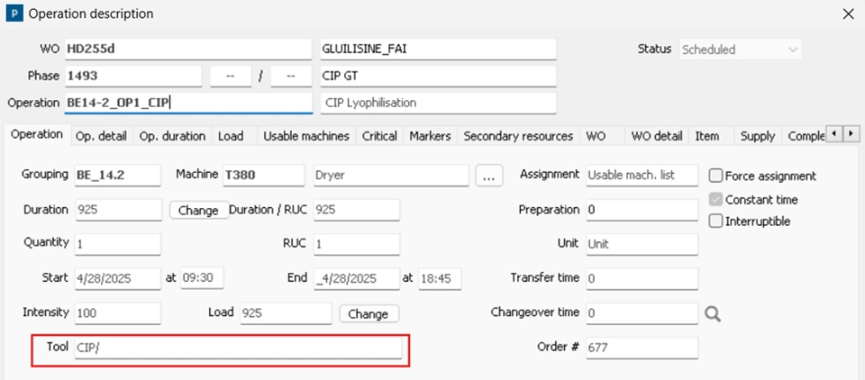 Also, for a potential operation to be active with for example a 'CIP' parameter, that operation but also the operations triggering the end of the cycle must have the same 'CIP' parameter.