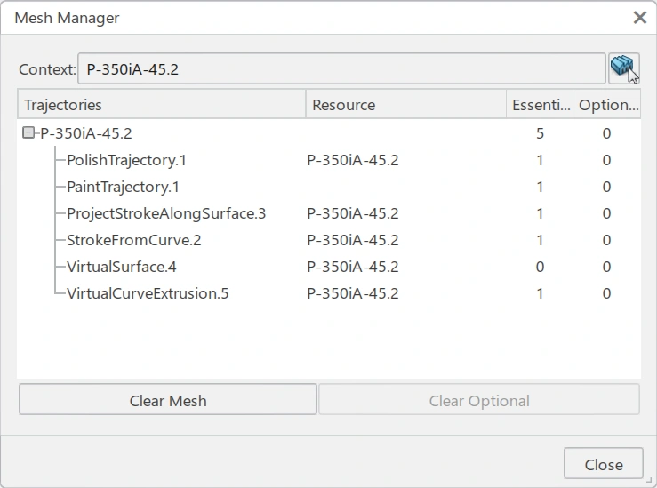 - Confirm that the surfaces to paint are included in the Mesh Manager