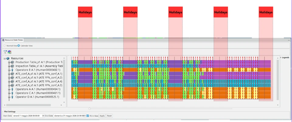 The problem is that my utilization rate is staggered, as it also takes into account holidays and factory downtime. For example: I have a machine utilization rate of 20% because I work two shifts without Saturdays and Sundays. In reality, the workstation is 100% utilized during my shifts.