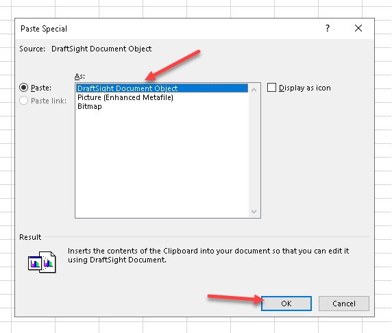 d. Select the option ‘DraftSight Document Object’ and click OK.