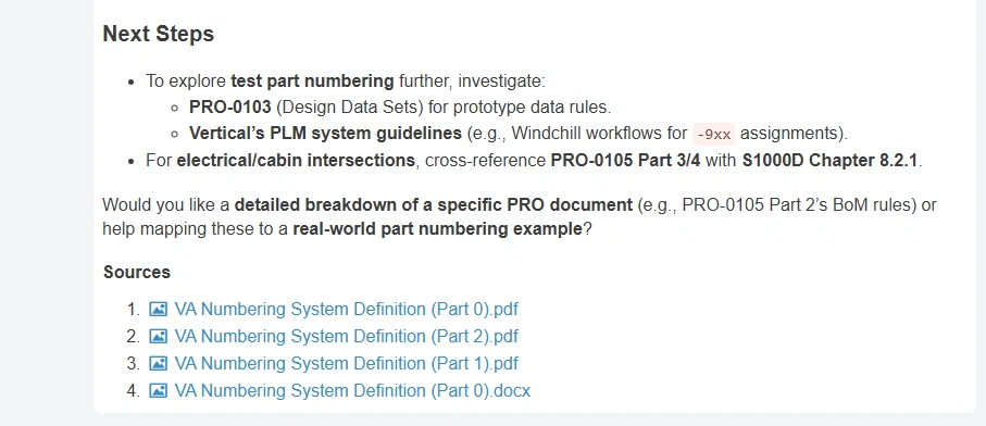 I was only using a small number of the company Procedure document, but the results were listed and linked to the source data provided at the end