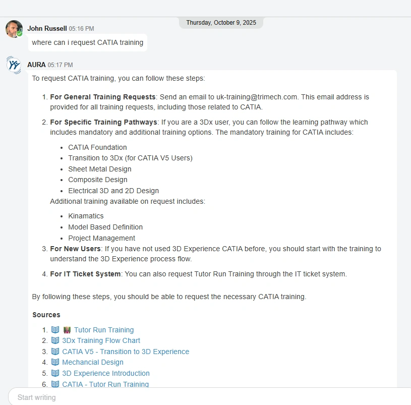I have recently been testing 3Dx AURA AI assistant, I have uploaded Training material, Guidelines and documents to the 3Dx Document management, and created SWYM posts.