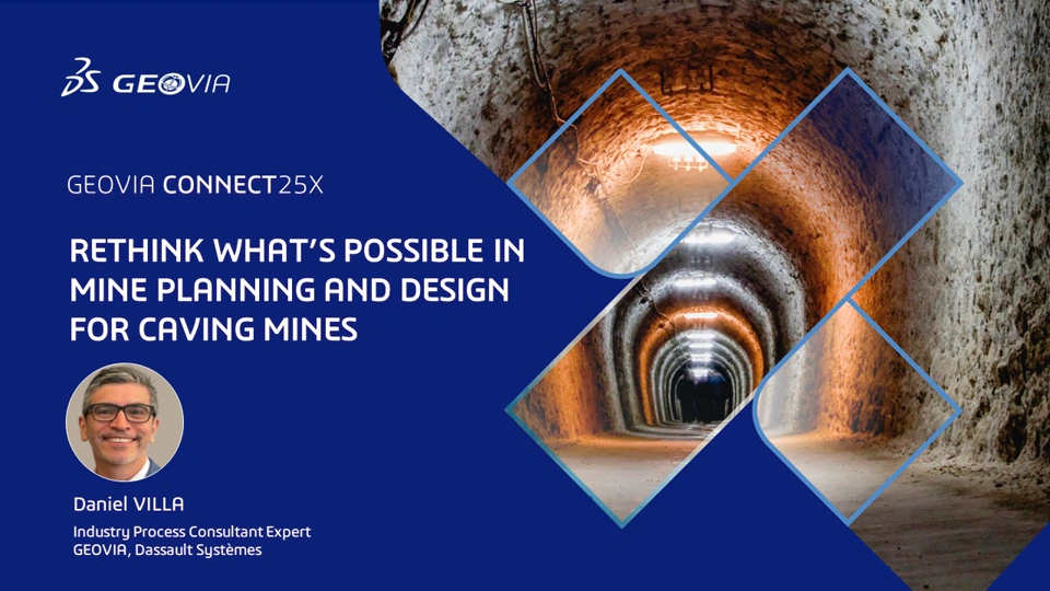 Session 3 - Beyond Mine Planning and Design for Caving Operations. Discover how advanced technologies are transforming caving operations, including Caving Intelligence for integrated dashboards and 3D models, and Mine Operations Management for optimized operational control, with Daniel Villa, GEOVIA Industry Process Consultant Expert.