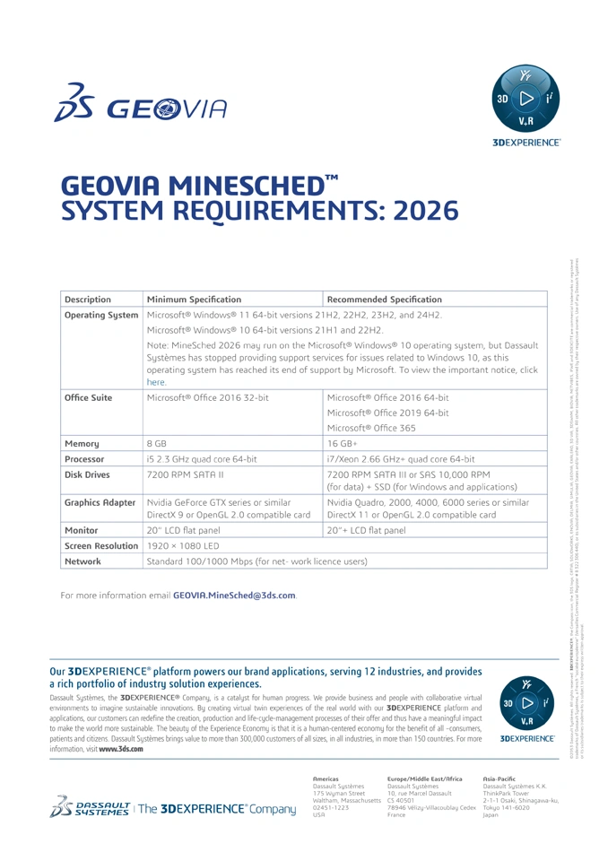 This latest release is now available for download on the 3DS Support site. GEOVIA users covered under the Dassault Systèmes Support and Maintenance agreement can access it at no additional cost.