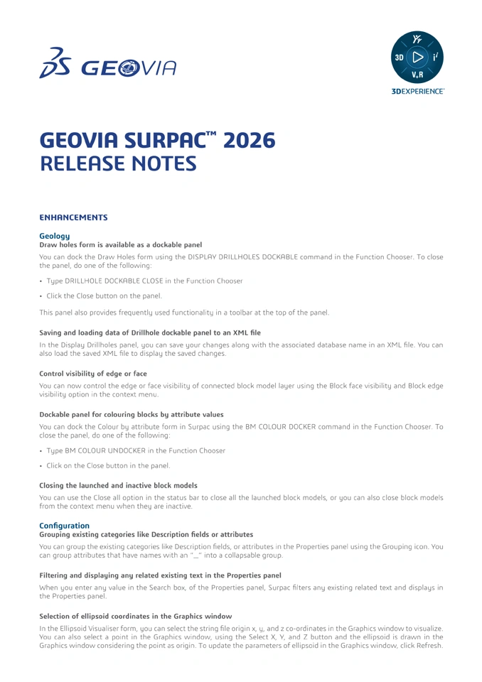 This latest release is now available for download on the 3DS Support site. GEOVIA users covered under the Dassault Systèmes Support and Maintenance agreement can access it at no additional cost.
