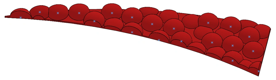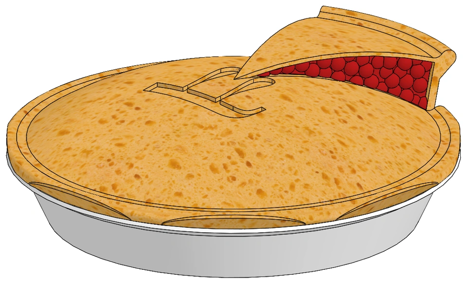 We're big fans of pies of all types; apple, pecan, banana cream, coconut cream, strawberry rhubarb... my mouth is watering... but we went with a classic for this design... A cherry pie. We modeled small panels that we could print flat and glue in place afterwards. They feature a few different sized squashed hemispheres that are 'randomly' placed across the piece using the "Sketch Driven Pattern" command. Printed in red, they look just like cherry pie filling!