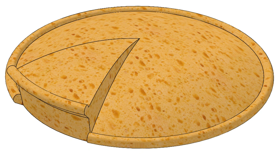 We added a bunch of detail to the pie crust, including a Pi symbol on the crust, recesses on the sides of the piece being removed, and scalloped details along the edge.
