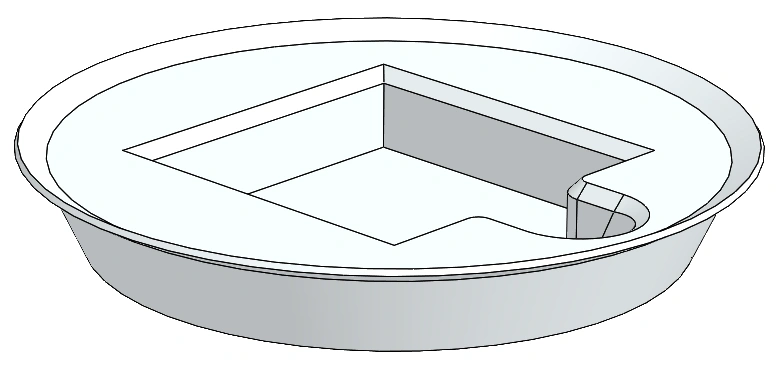 We modeled the pie pan first - A simple revolve with a recess cut into it for the Post-it notes (plus room for your thumb to reach in and grab one).