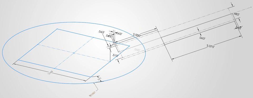 We started by taking key measurements of the Post-it notes (3" square), and the Sharpie marker (2" long cap, 0.51" max. diameter; 3.375" long marker "handle", 0.482" max. diameter), and constructed a few layout sketches in SOLIDWORKS for Makers. These would establish the framework off of which every other feature would be designed.