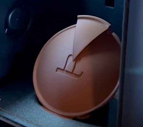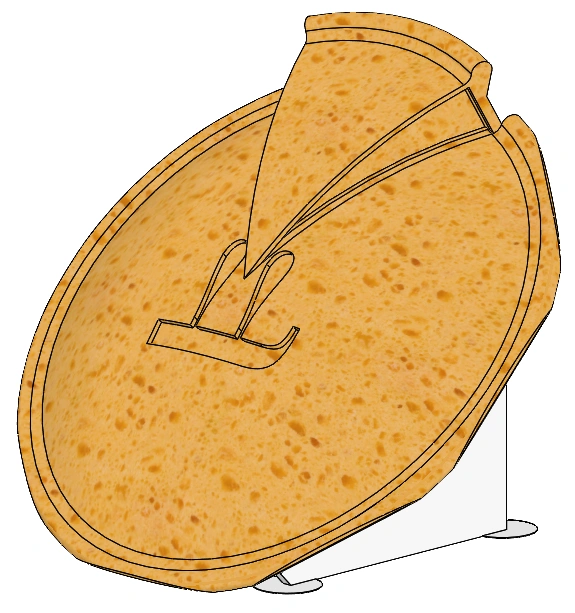 The shape of the scallop was in fact determined by the strategy we used to print the crust. As you may know, shallow dome shapes like this can end up with very obvious layer lines if printed flat on the bed, we cut an intentional flat spot on the side of the crust (the first scallop) and then modeled our own support gussets to print the crust at an angle. This produced an amazingly smooth surface across the whole crust.