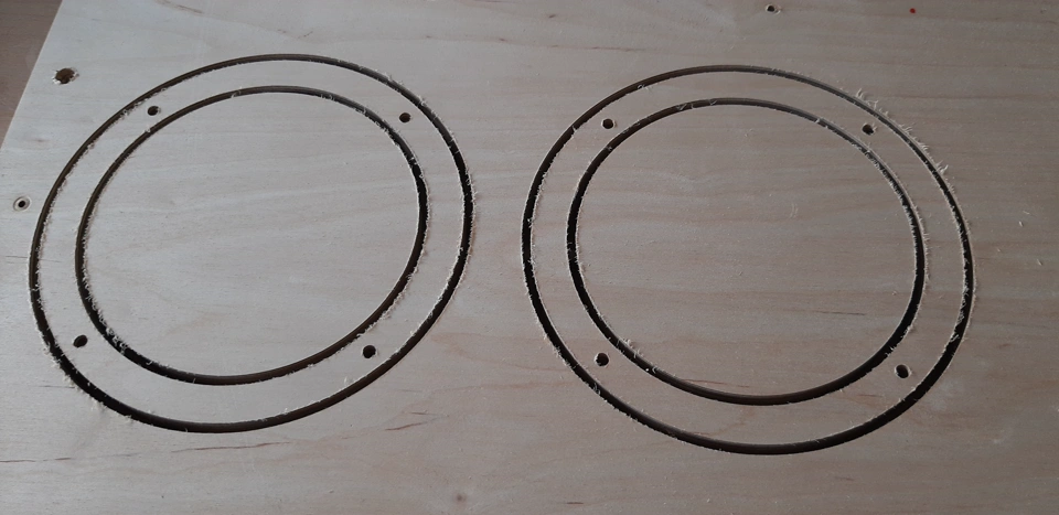 To build them, I used two wooden boards — one 21 mm thick and one 24 mm thick — which were later attached together after milling. Why two boards? it was easier to find them at the Baumarkt than a single 45 mm board!