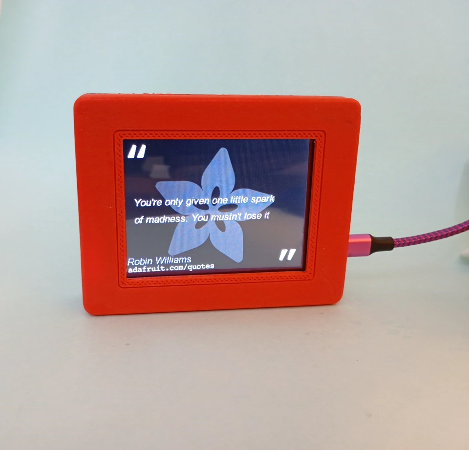 Weekend project: PyPortal Adafruit Quote Book Learning Guide using CircuitPython. I made a simple custom 3D-printed enclosure in SOLIDWORKS (snap-fit could have been better). I have also shared a timelapse video in the comments.