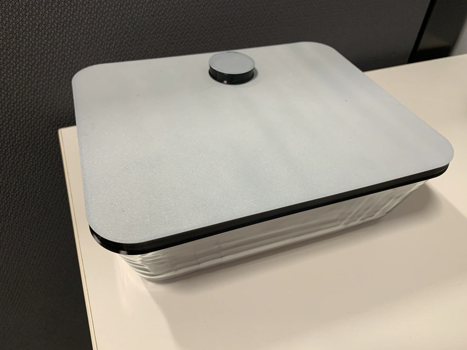 The breakthrough came by printing the first 1 mm in PETG. PETG adheres well to TPU, and this approach solved both the removal issue and the structural weakness. The result: a lid with a stiff top and flexible sides that snaps on securely and can handle stacking.